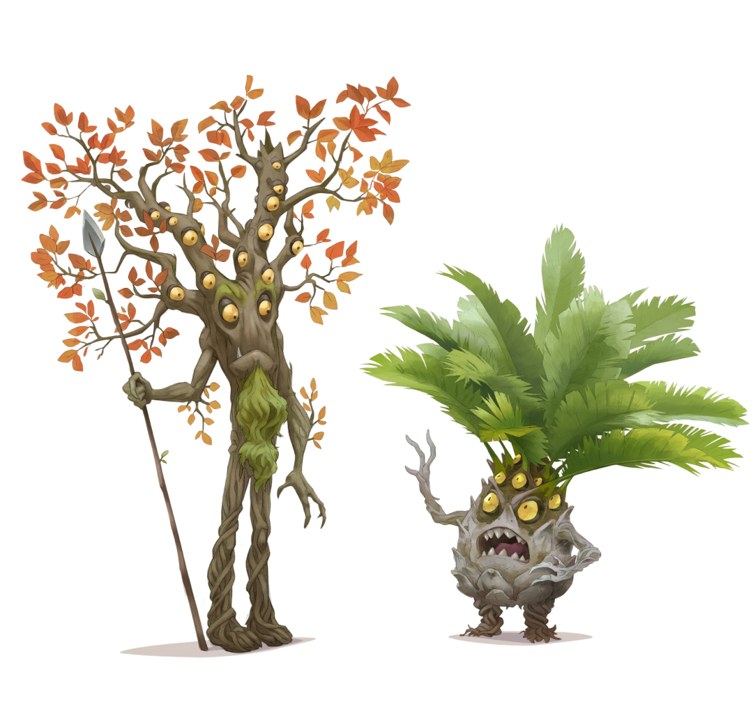 Provengono da Turxicaia e somigliano ad alberi… ma non sono semplici piante. Le loro foglie hanno occhi in movimento, capaci di vedere lontanissimo e attraverso ogni materiale. Un tempo sentinelle dei sogni dimenticati e alleati preziosi, ora rappresentano una minaccia.