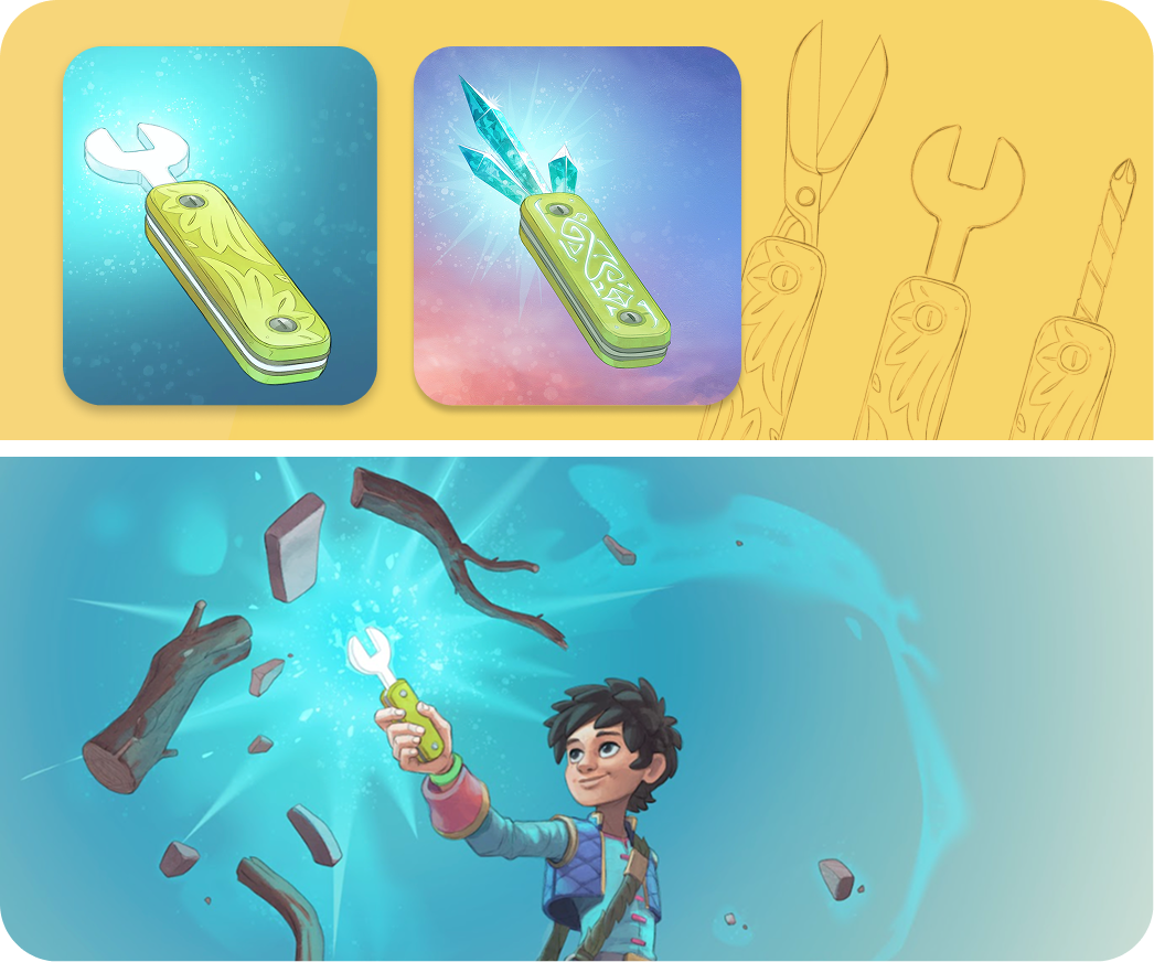 Il Threadlux è il set magico di Ginny. Nel mondo reale sono i suoi inseparabili ferri da maglia, utili per ogni filato. Nel Regno dei Sogni, però, rivela la sua vera natura: capace di tessere la realtà, permette di creare protezioni magiche, aprire passaggi tra i mondi e riparare legami spezzati.