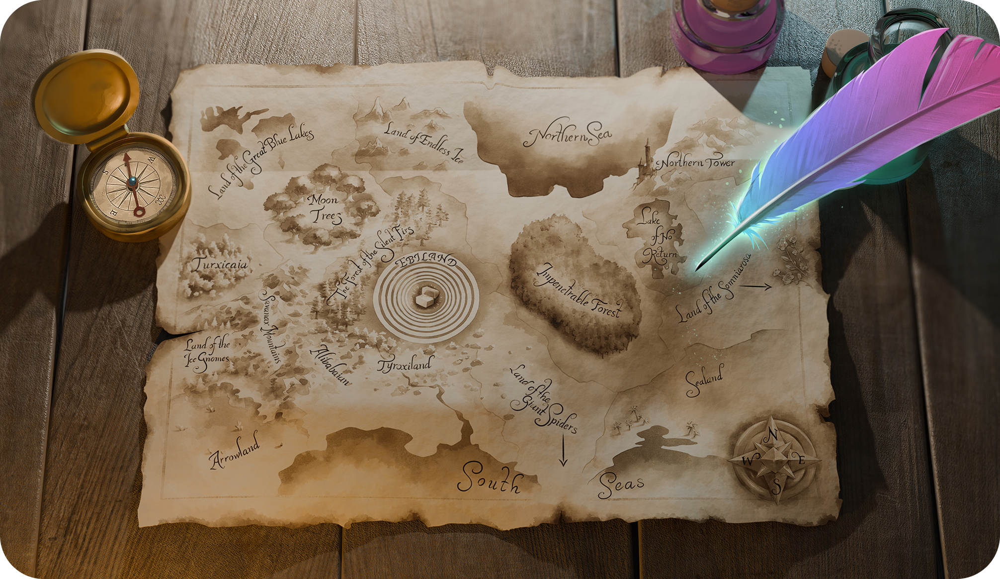 Un tempo sospese sopra Ebilandia, queste terre erano il cuore pulsante dei legami tra i sogni e chi li aveva generati. Qui regnava Filandria, la più potente tra le Fate Tessitrici di Sogni, e per lei lavoravano i Tessilandri, creando filati speciali capaci di ricucire sogni spezzati e mantenerli connessi ai loro proprietari nel mondo reale. Collegate alle Terre di Nebriax da un lungo ponte sospeso, furono distrutte da Temporium per volere di Azimur. In queste terre vivevano Tessiluna e Lumì, custodi di un sapere antico che Ginny ha contribuito a riportare in vita.